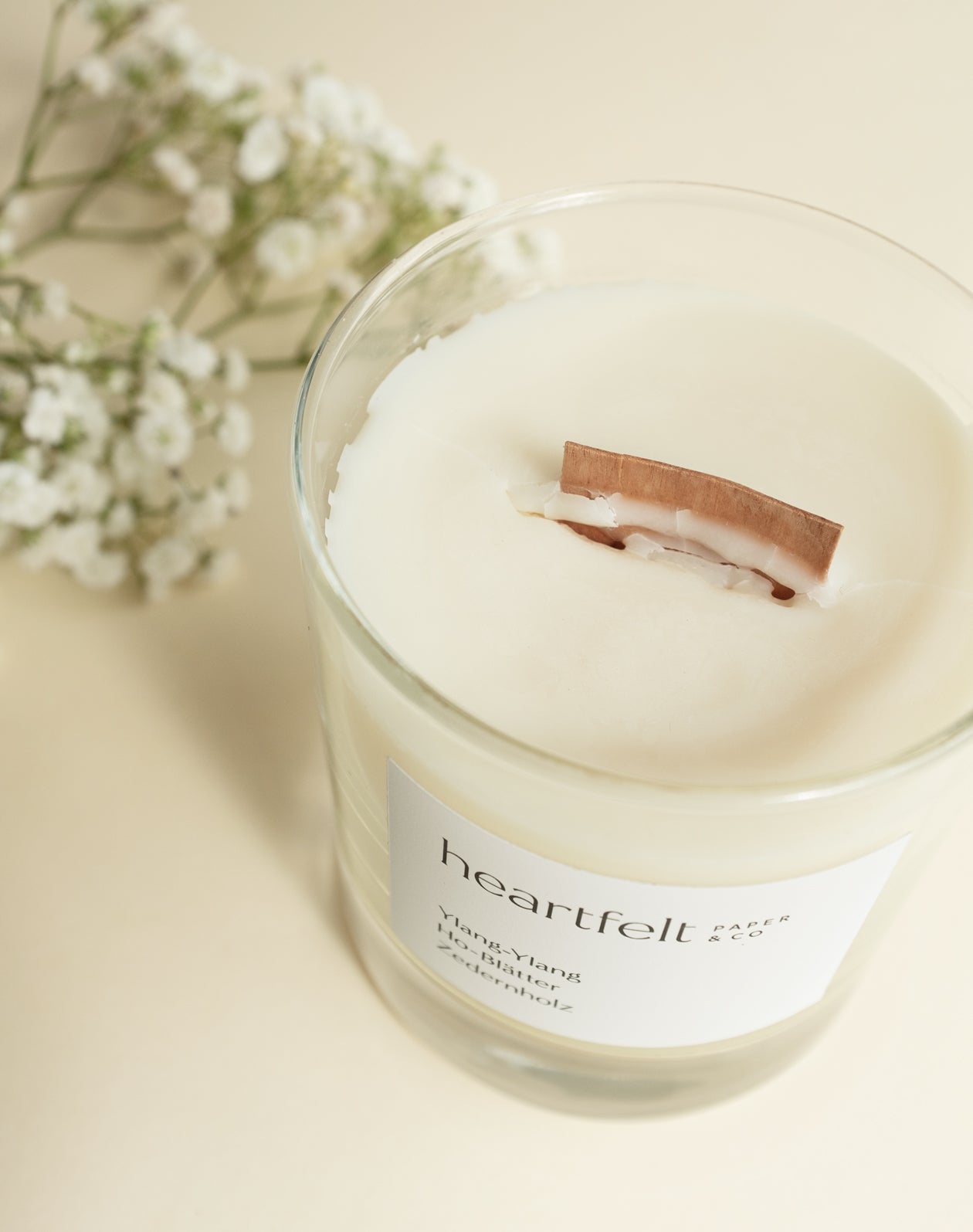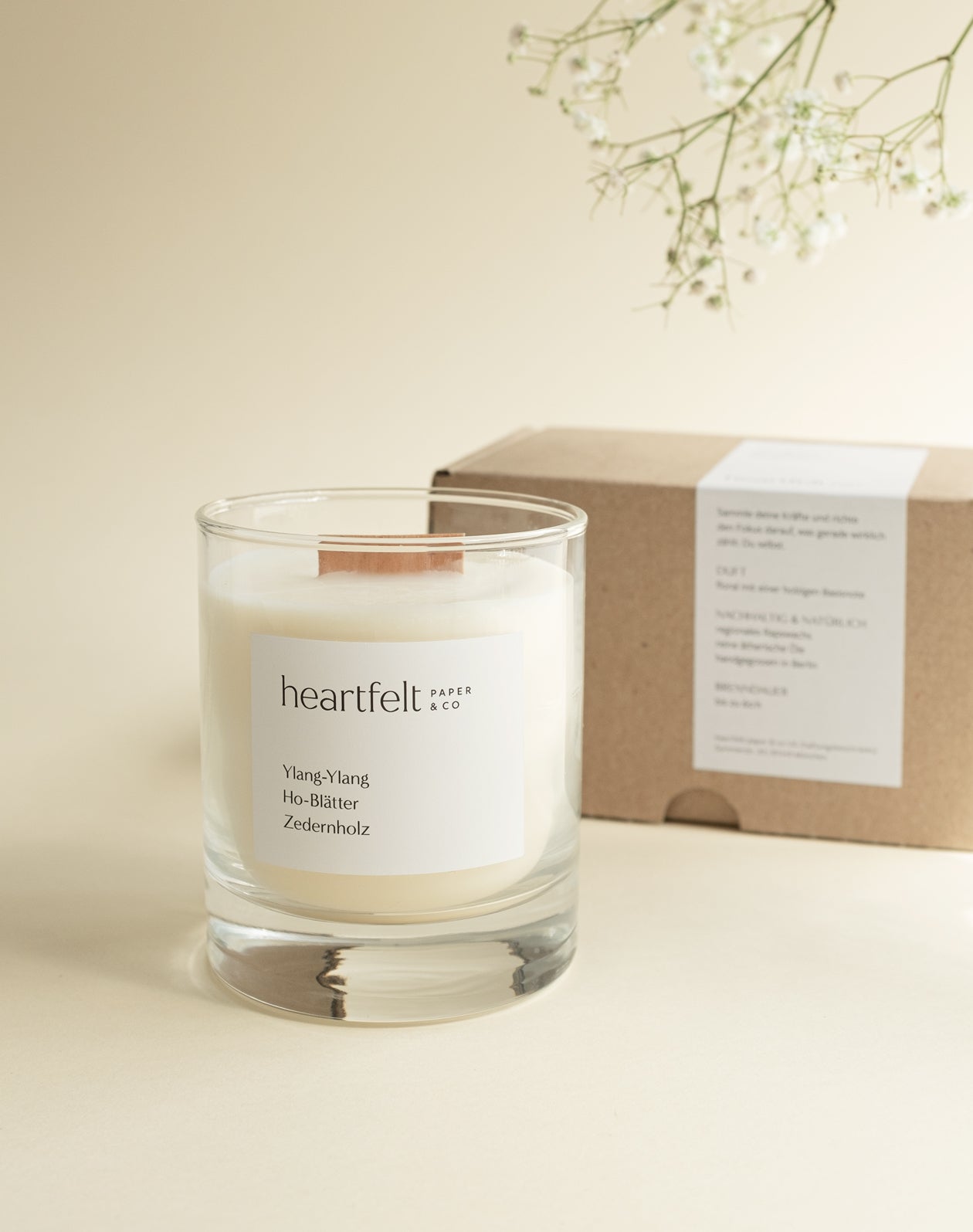 Der ungewöhnliche Holzdocht aus regionaler Birke, knistert gemütlich wie ein Feuer und sorgt für ein gleichmäßiges Abbrennen. Und das bis zu 60 Stunden.